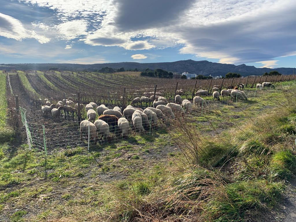 Et, tout récemment, un berger amène ses brebis dans nos vignes en fin d’hiver. Elles tondent l’herbe et les semis dans nos vignes, et amende naturellement les parcelles.
